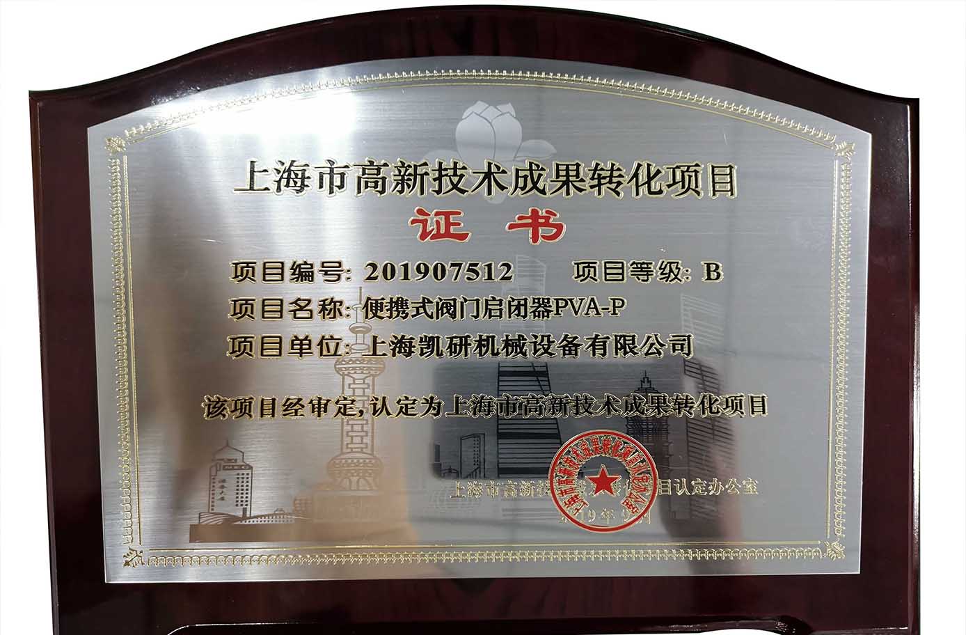 Recently, the "portable valve hoist" independently developed by Shanghai Kaiyan mechanical equipment Co., Ltd. has been recognized as a high-tech achievement transformation project in Shanghai in 2019.